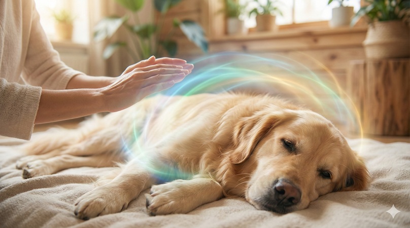 Gentle Reiki healing for animals to reduce anxiety and support recovery.